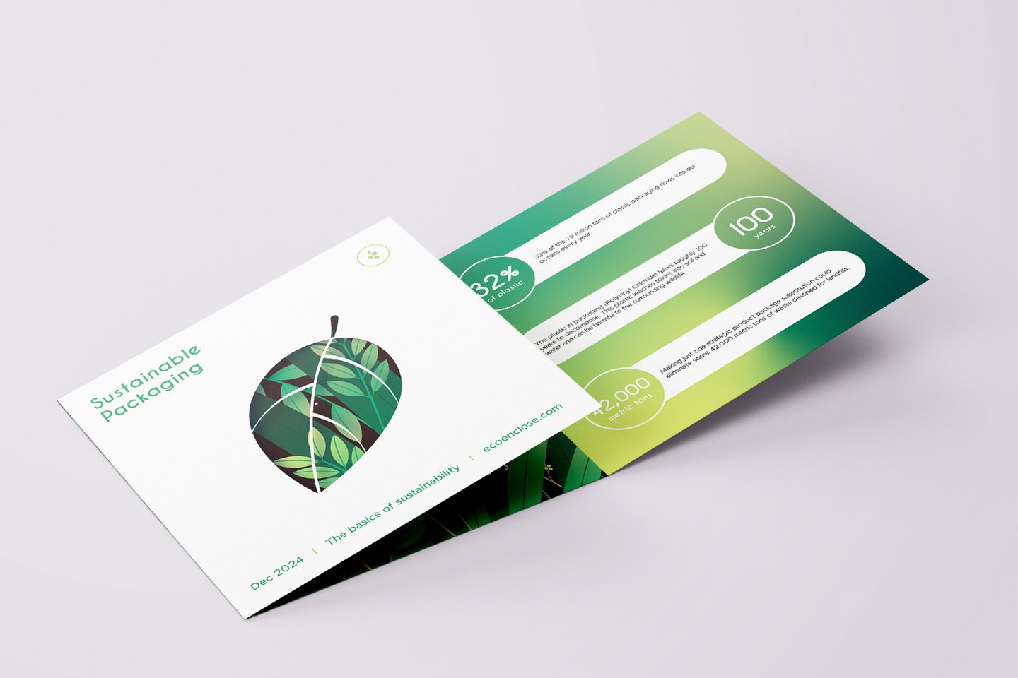 What follows is another project from college in which I created brochure for ecoenclose.com, an organization dedicated to producing and providing information about sustainable packaging. I leaned into the ways I could experiment with revealing layers while keeping readability and effectively relaying information top priority.